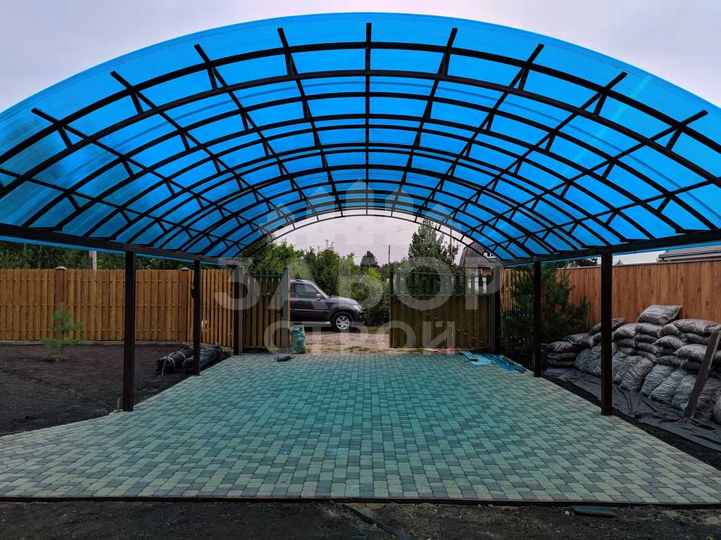 Поэтому компания "НавесСтрой" настоятельно рекомендует не экономить, а усилить каркас арочного навеса более жёсткими профилями с увеличенной толщиной металла и количеством несущих ферм.