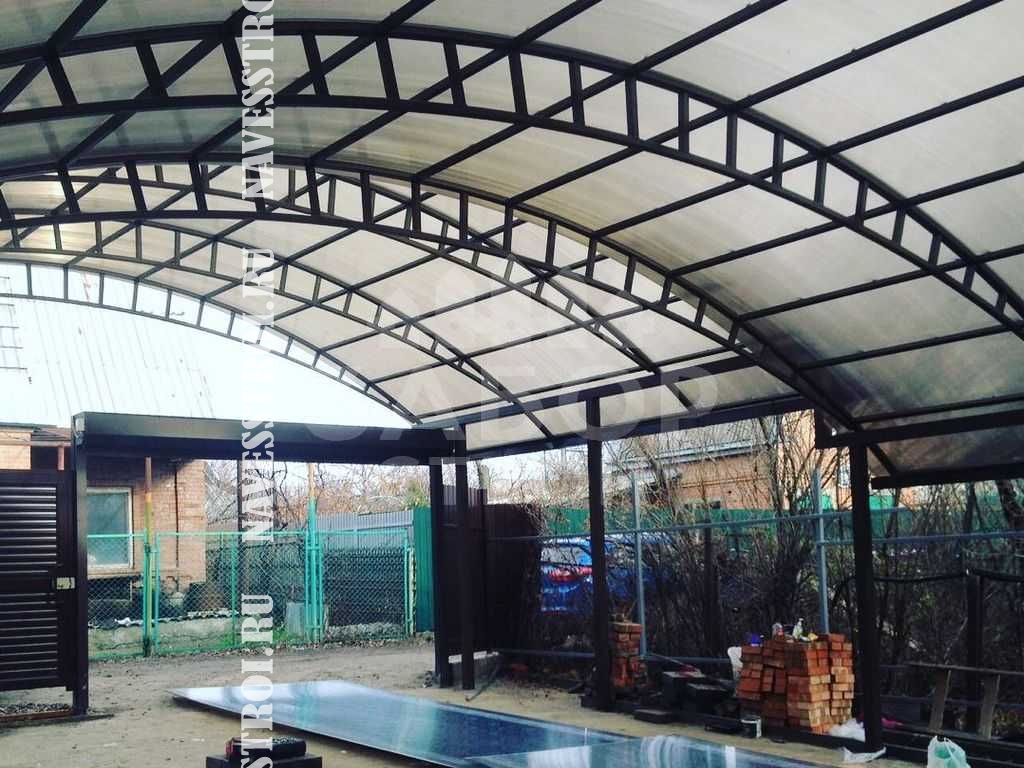 За день на даче изготовили арочный навес 5 на 7 с покрытием поликарбоната. Привезли уже готовые крашенные фермы и весь остальной материал. Все за собой убрали и увезли мусор. Молодцы!