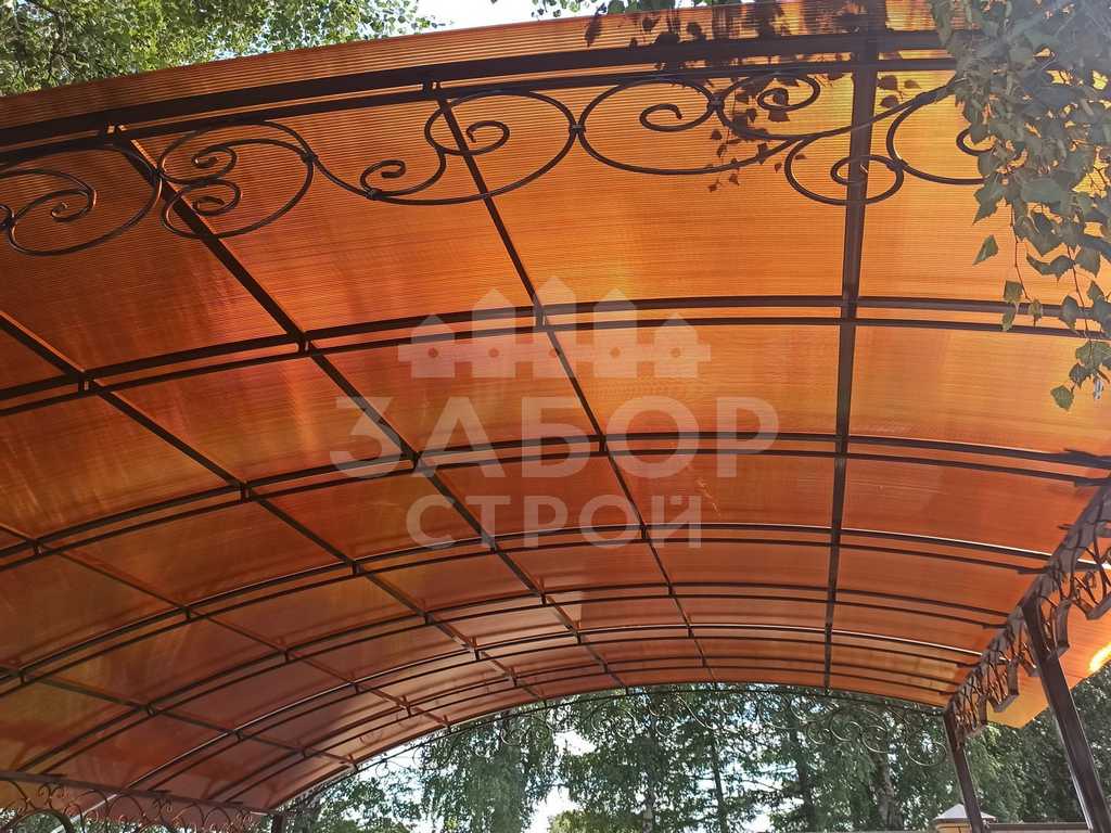 Поэтому компания "НавесСтрой" настоятельно рекомендует не экономить, а усилить каркас кованого навеса более жёсткими профилями с увеличенной толщиной металла и количеством несущих ферм.