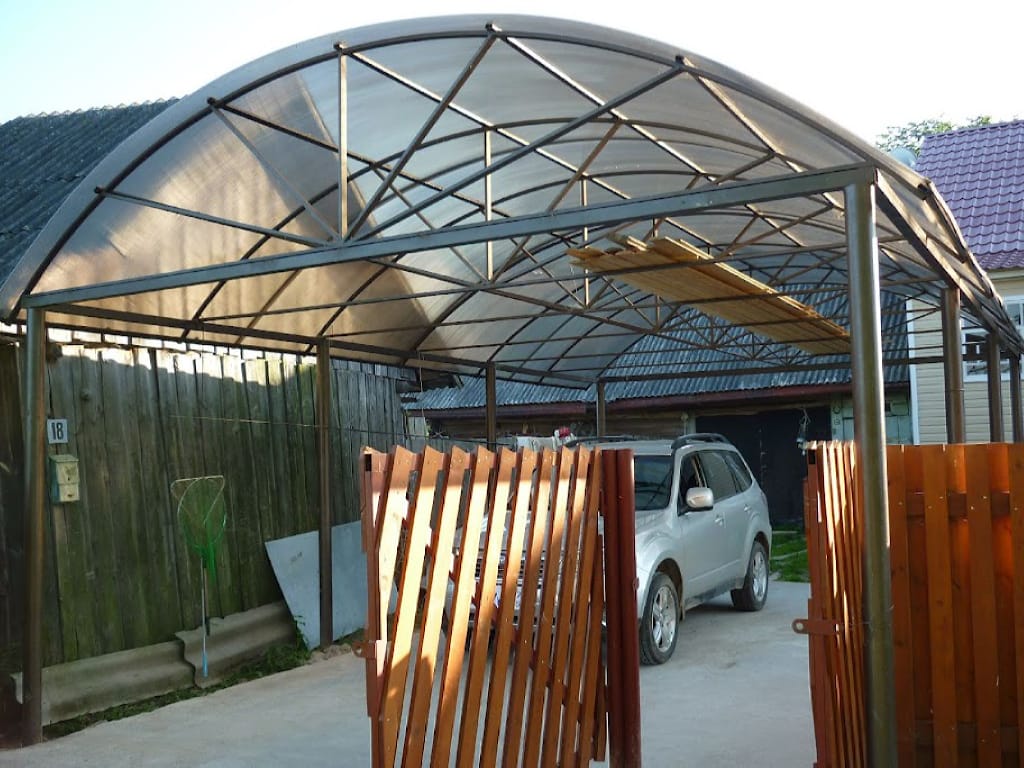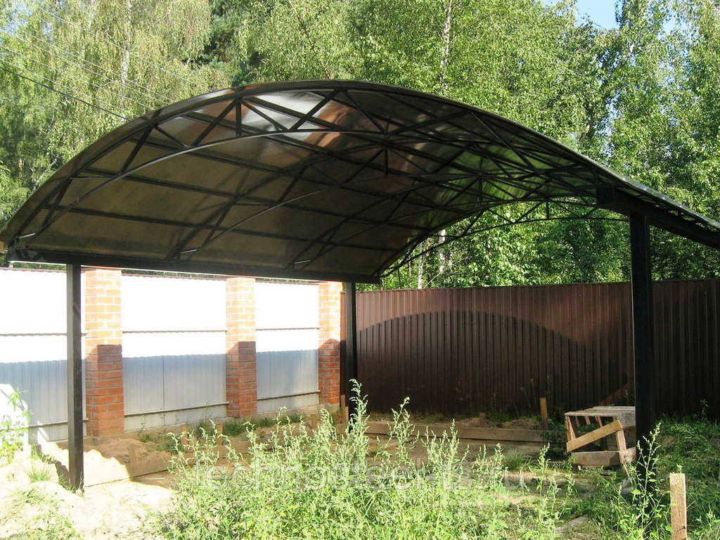 Поэтому компания "НавесСтрой" настоятельно рекомендует не экономить, а усилить каркас навеса для одного автомобиля более жёсткими профилями с увеличенной толщиной металла и количеством несущих ферм.