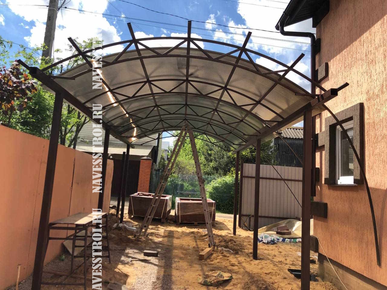 За день на даче изготовили арочный навес 5 на 7 с покрытием поликарбоната. Привезли уже готовые крашенные фермы и весь остальной материал. Все за собой убрали и увезли мусор. Молодцы!