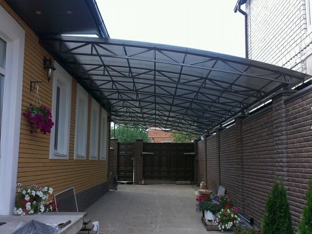 Поэтому компания "НавесСтрой" настоятельно рекомендует не экономить, а усилить каркас навеса из поликарбоната более жёсткими профилями с увеличенной толщиной металла и количеством несущих ферм.