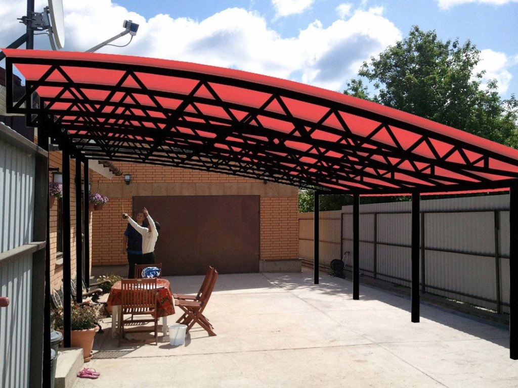 За день на даче изготовили арочный навес 5 на 7 с покрытием поликарбоната. Привезли уже готовые крашенные фермы и весь остальной материал. Все за собой убрали и увезли мусор. Молодцы!