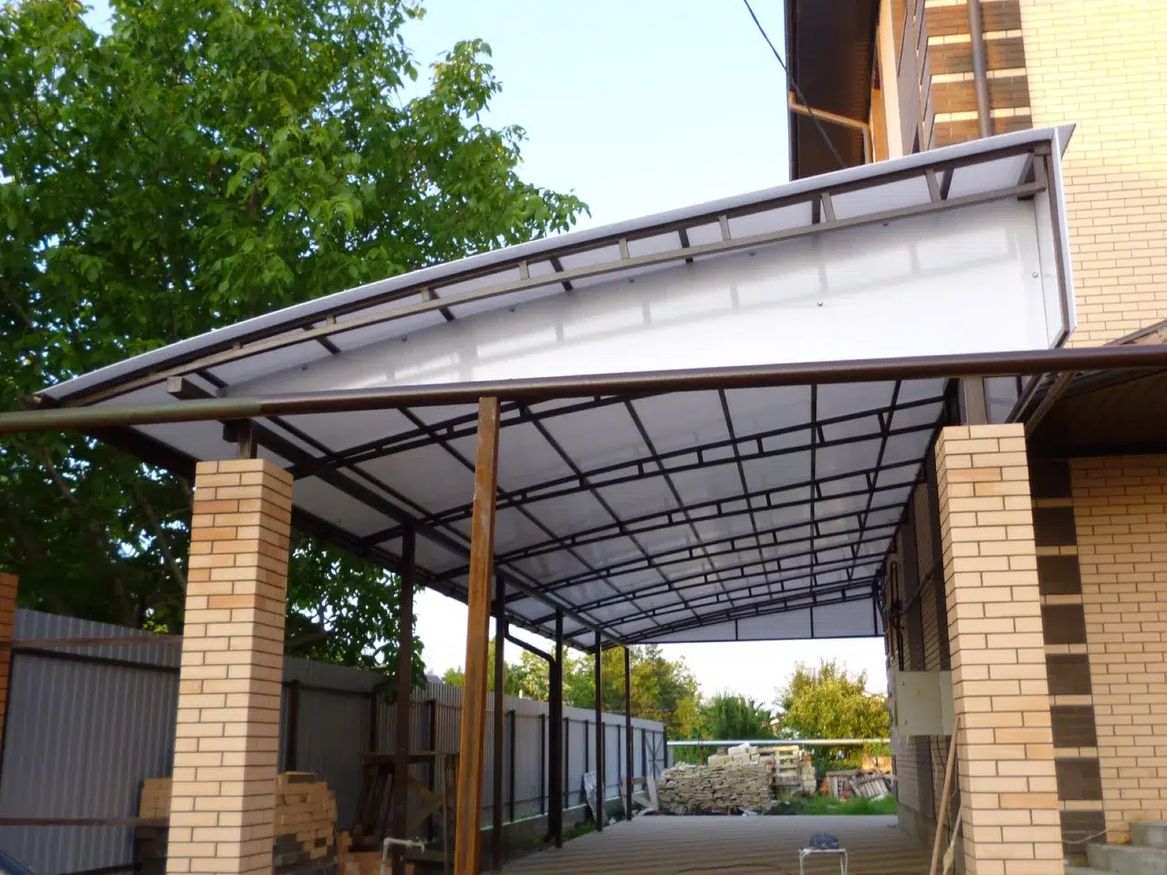 Поэтому компания "НавесСтрой" настоятельно рекомендует не экономить, а усилить каркас навеса из профильной трубы более жёсткими профилями с увеличенной толщиной металла и количеством несущих ферм.