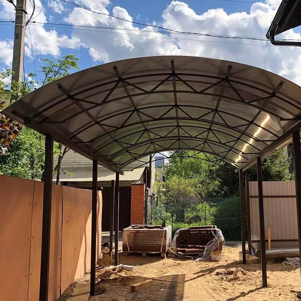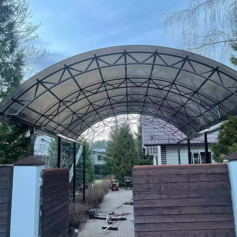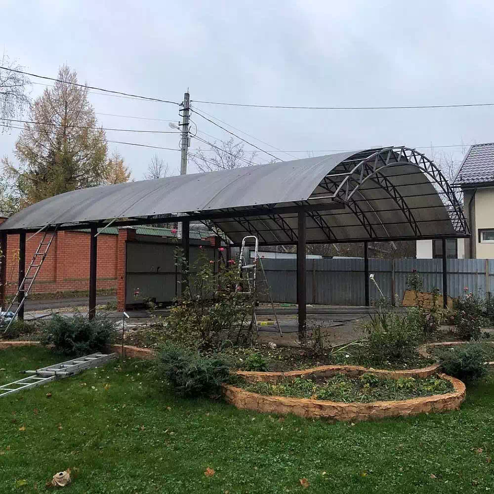 За день на даче изготовили арочный навес 5 на 7 с покрытием поликарбоната. Привезли уже готовые крашенные фермы и весь остальной материал. Все за собой убрали и увезли мусор. Молодцы!