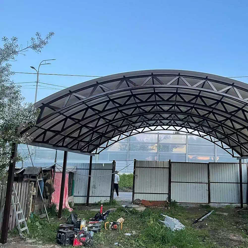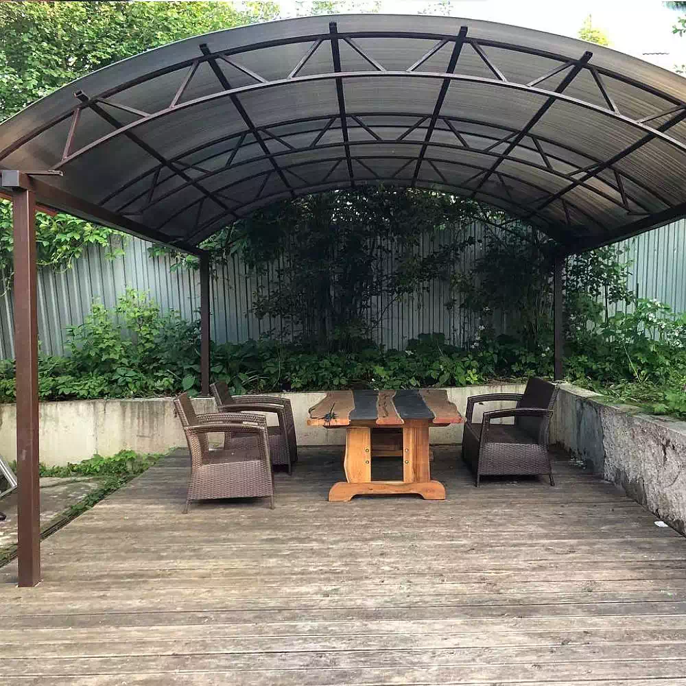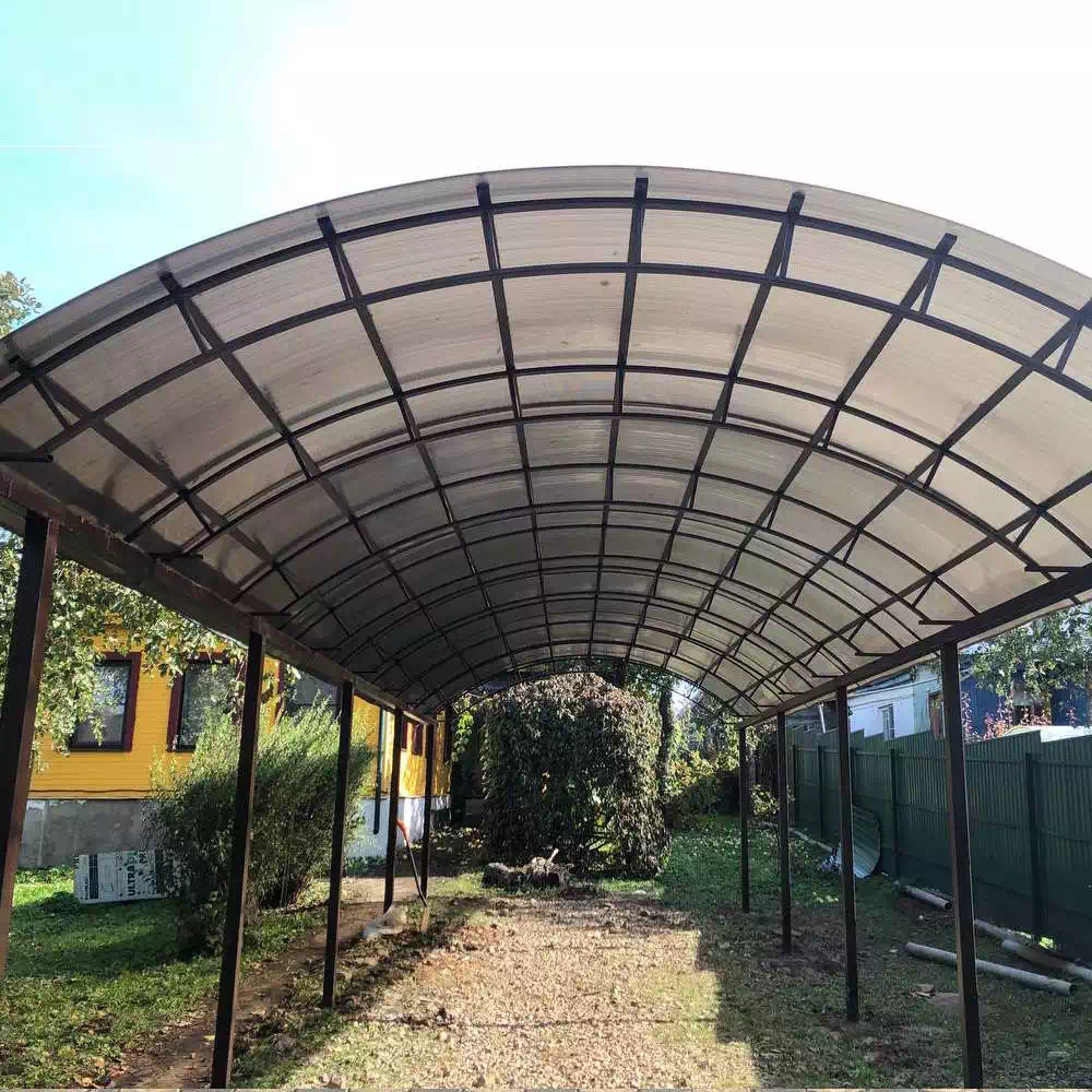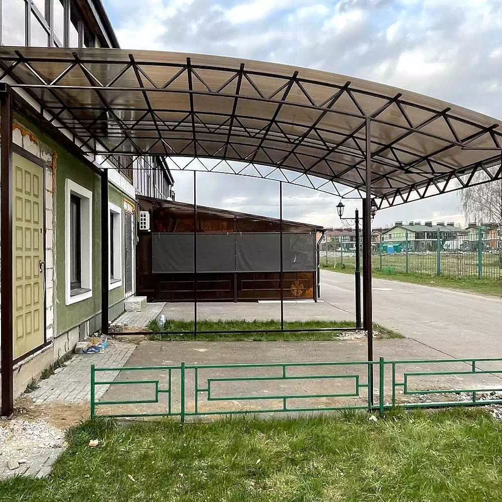 За день на даче изготовили арочный навес 5 на 7 с покрытием поликарбоната. Привезли уже готовые крашенные фермы и весь остальной материал. Все за собой убрали и увезли мусор. Молодцы!